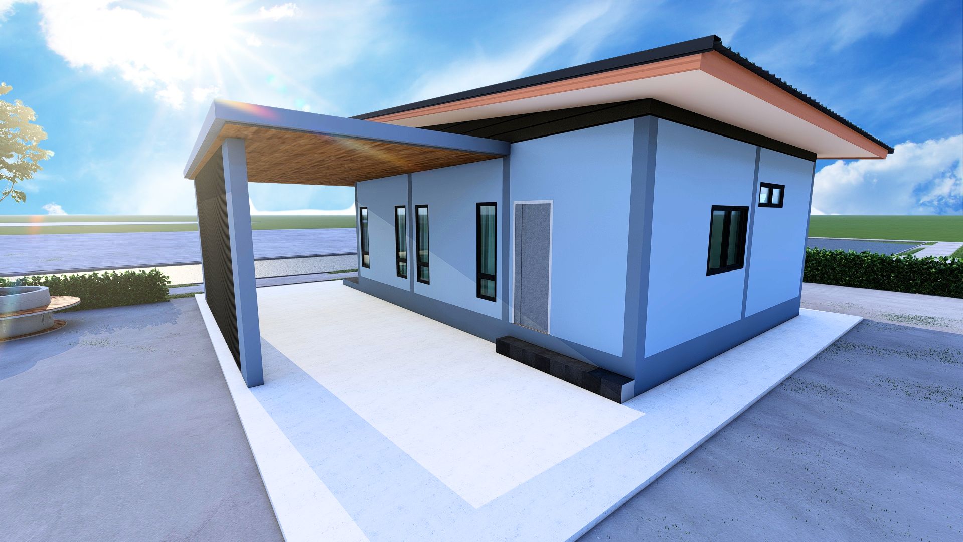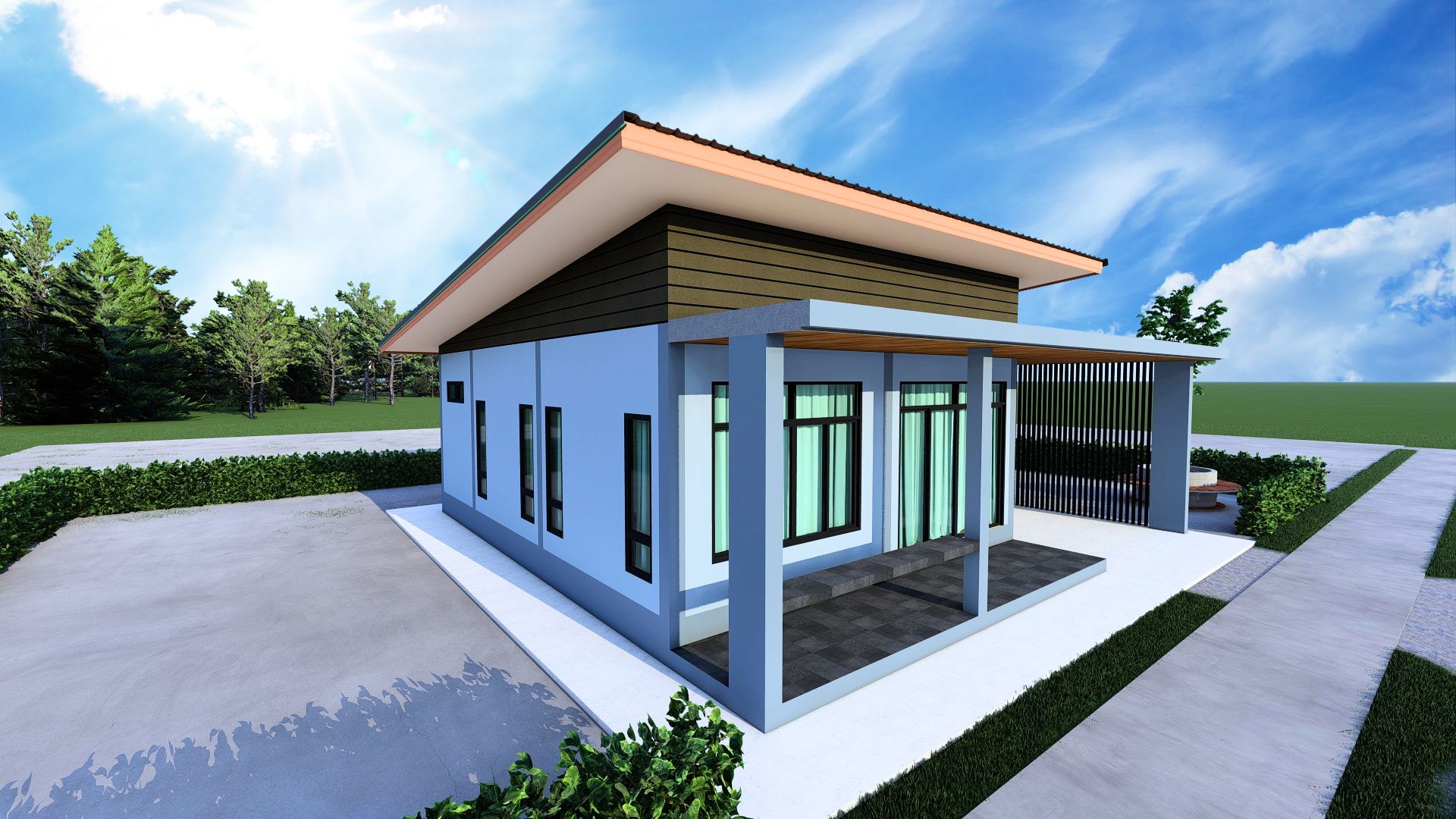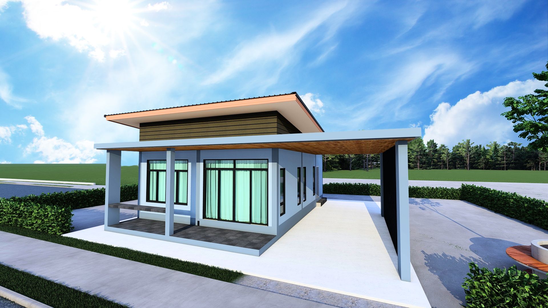 • ประเภท: บ้านชั้นเดียว สไตล์โมเดิร์น